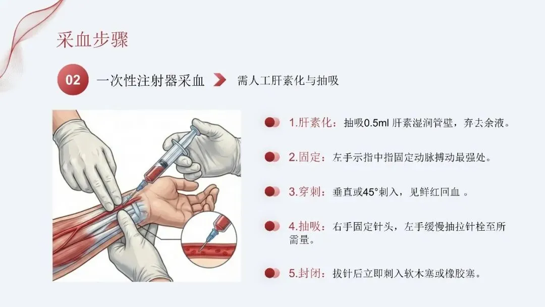 动脉血标本采集法,标准操作步骤与注意事项-医护PPT模版