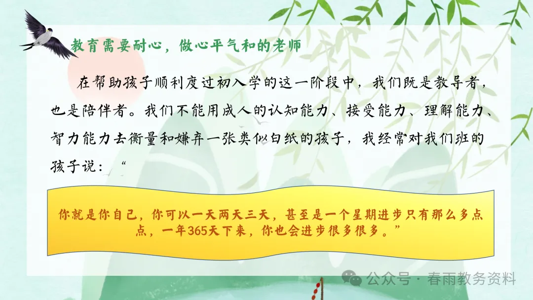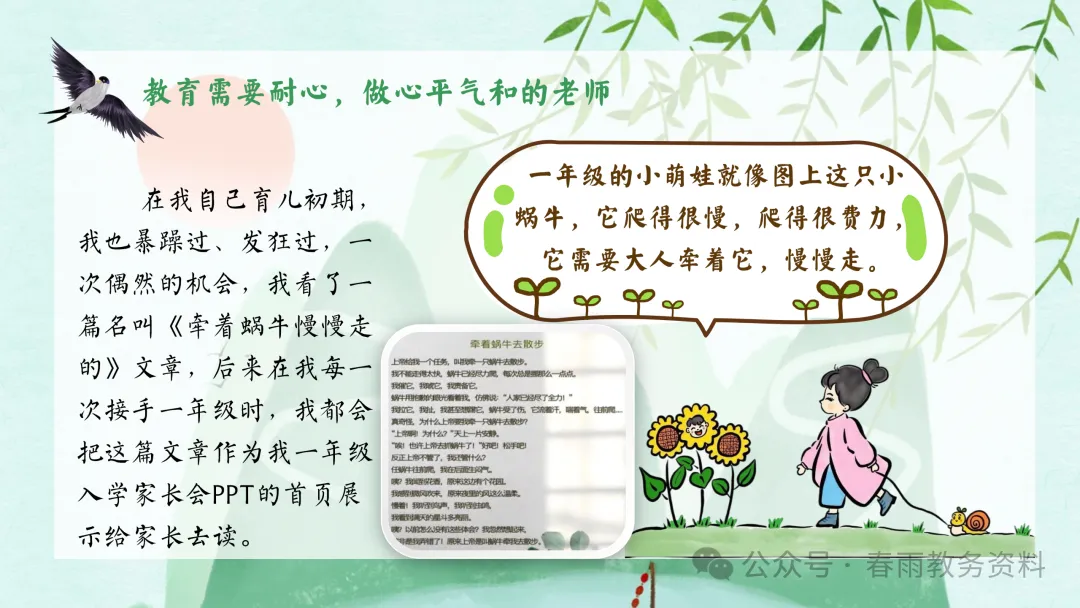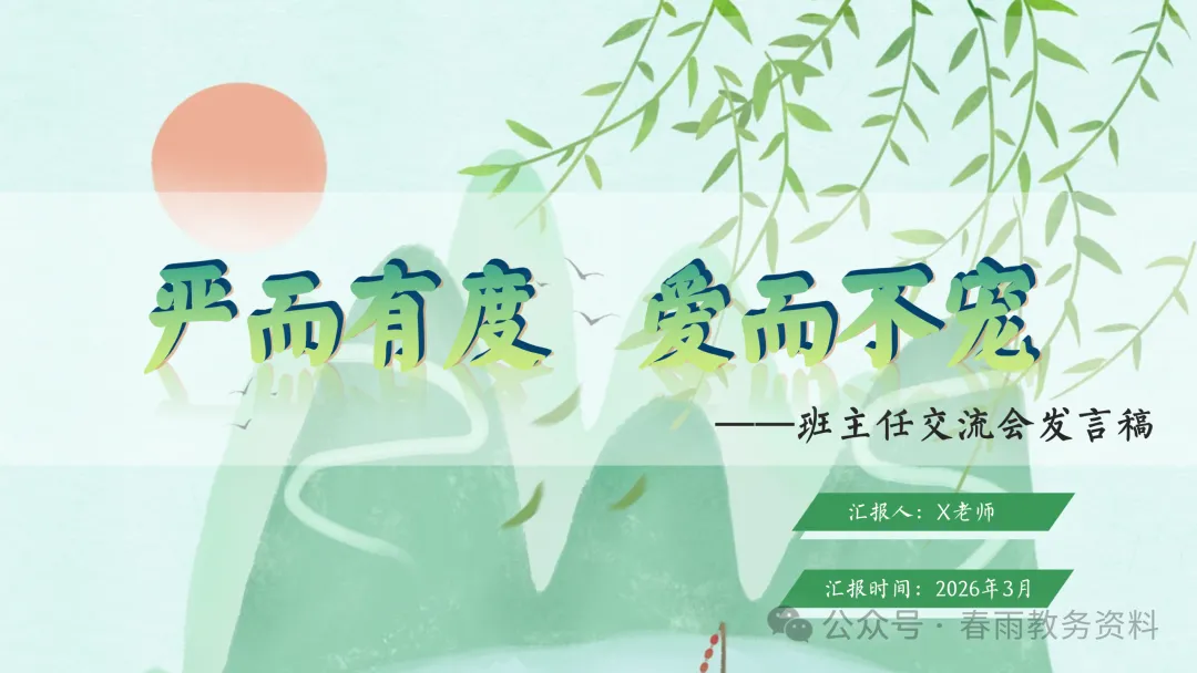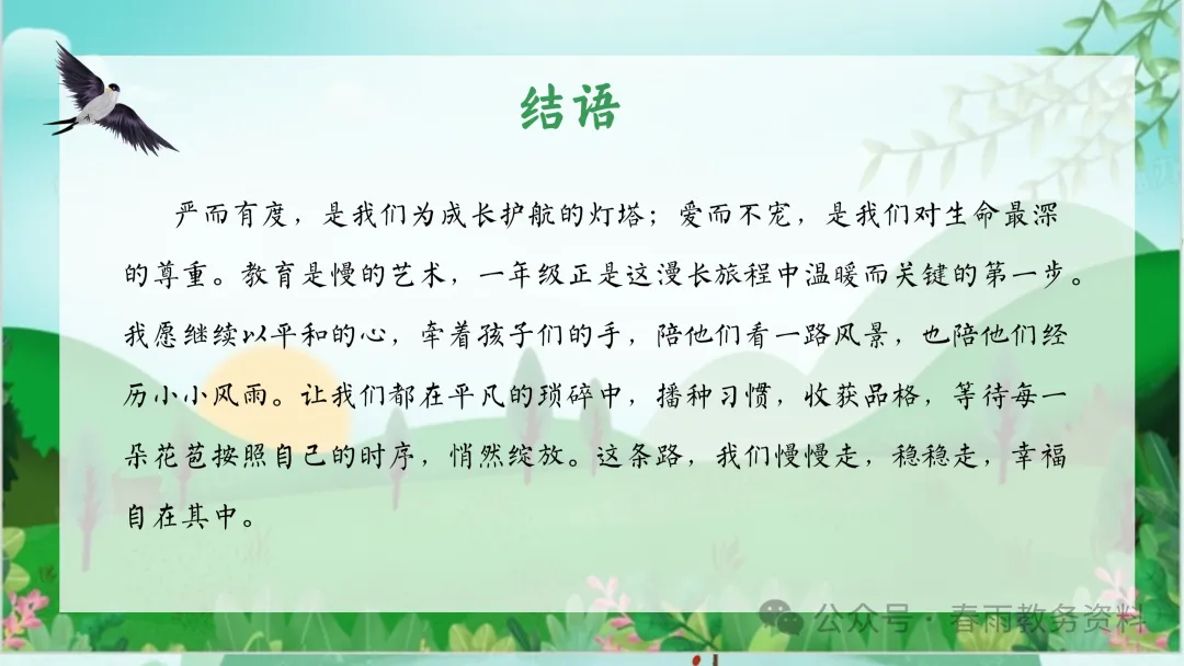 很高兴在这与您相遇,如果您是一位班主任老师,每天除了应对繁重的教学工作,还要加班整理班级、教务、教研、课件PPT资料,请关注下方的“小木教务资料”,让我们风雨同路、一起成长~今天分享的是2026一年级班主任经验工作介绍的ppt课件和配套的发言稿,主题是《严而有度,爱而不宠》(文末有课件资料的获取方式)
