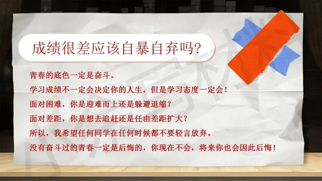 这个课件以「献给不甘心的你」励志视频开头,直接点燃了同学们的高考的热情。