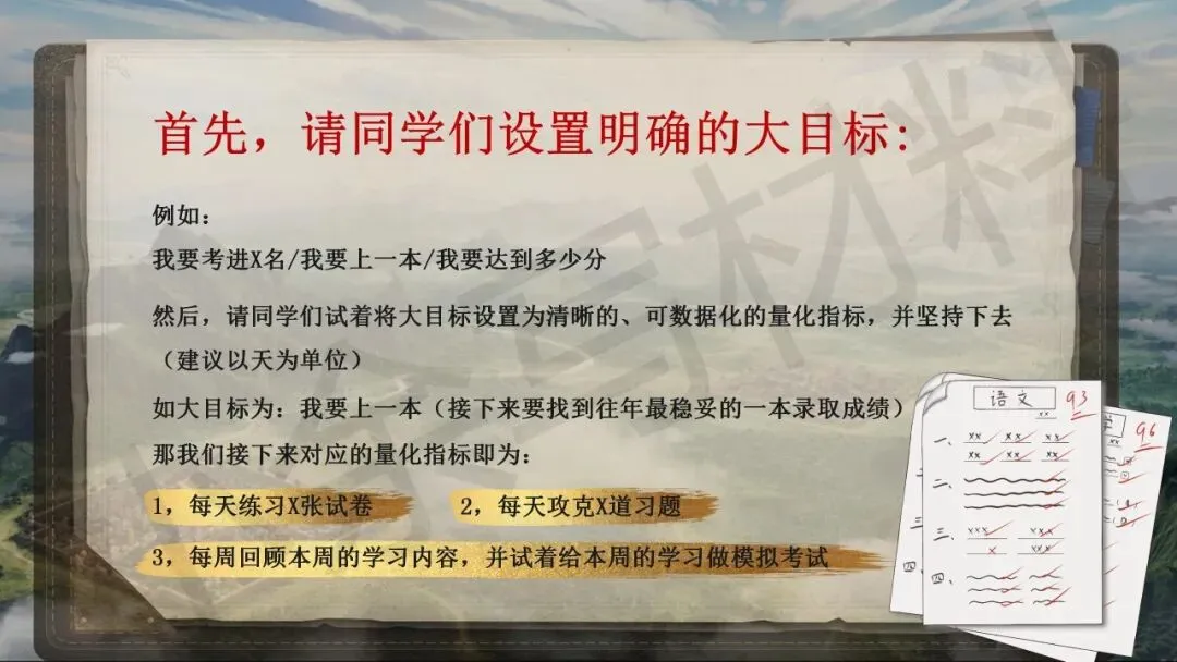 这部分告诉同学们现在开始给自己立一个目标,然后努力朝着这个目标前进。