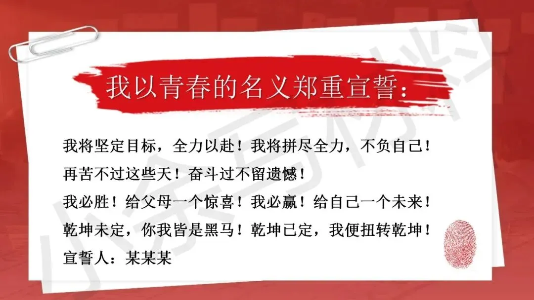 关于《今年栀子花开,你我金榜题名》为主题的「高三高考百日誓师主题班会」PPT 课件就介绍到这里了。