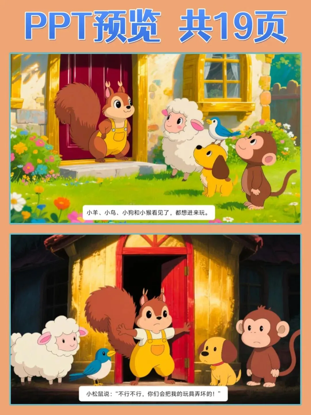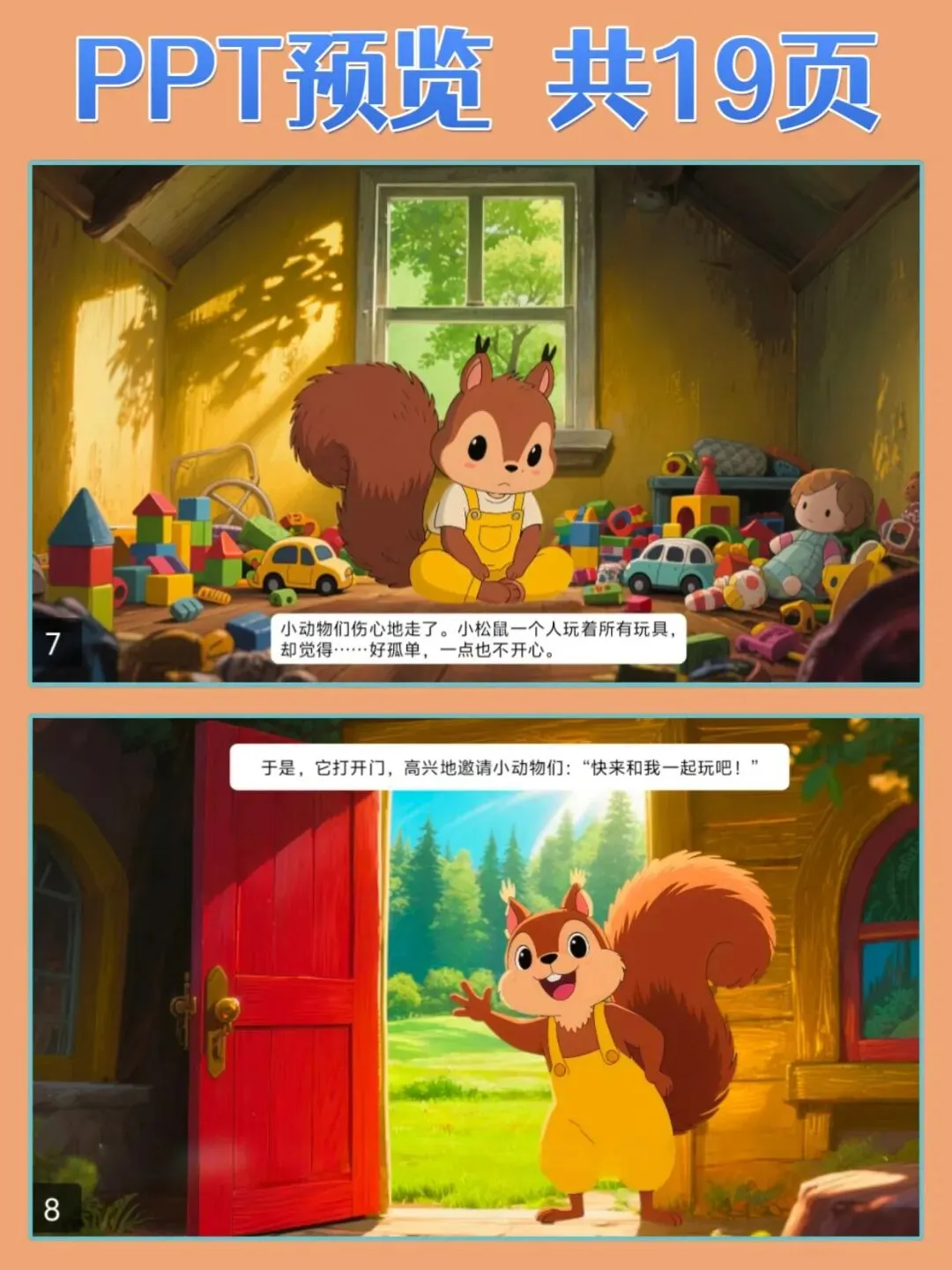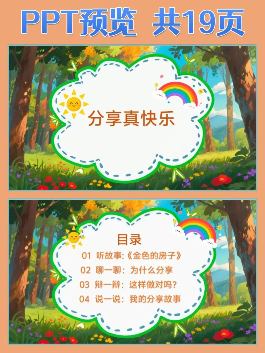 1.认知目标:听懂故事内容,理解分享就是把东西和别人一起用、一起玩