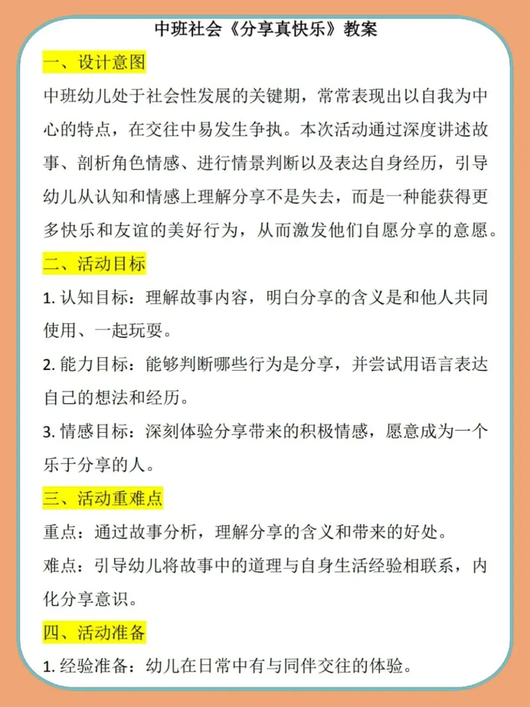 3.情感目标:真切感受分享带来的温暖与快乐,愿意主动去分享浅。