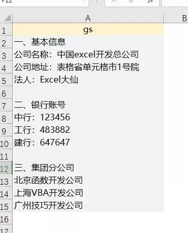 效果如下,在Excel中输入字母 gs,向下拉,公司的信息就全部出来了。