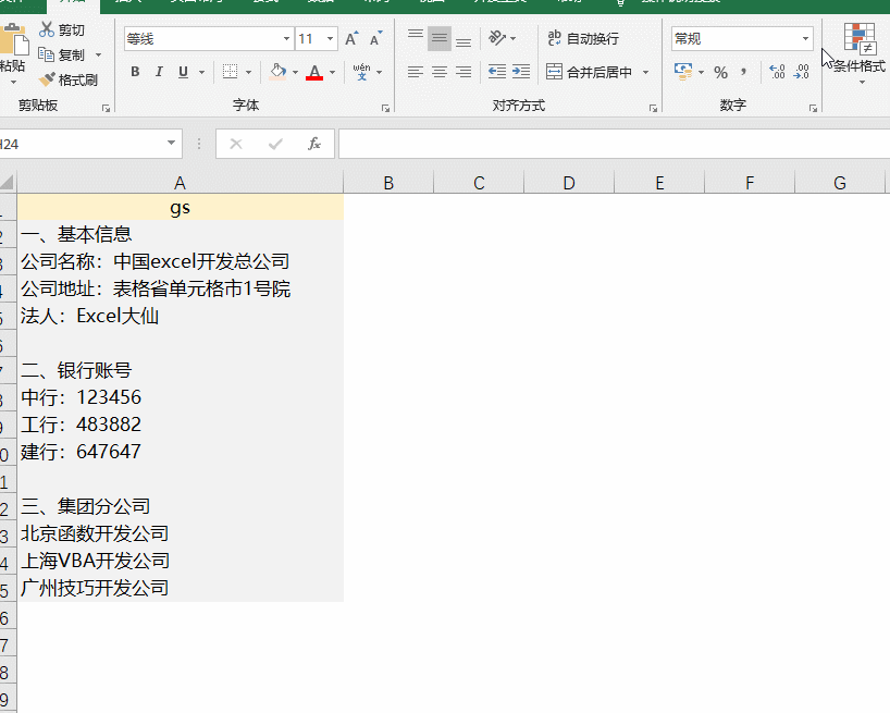 即可完成,之后在任一excel表中输入gs,即可查看公司的详细信息了。