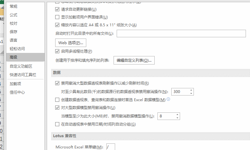 2、之后在工具栏上,鼠标点击右键 - 自定义功能区-选项-高级选项,以找到编辑自定义列表按钮,动图如下:
