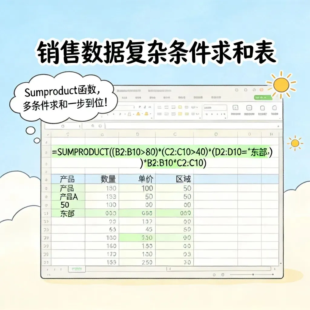 还记得刚入职的时候,我接手了一个销售数据统计的任务。数据量很大,而且需要根据多个条件来统计不同产品、不同区域、不同时间段的销售情况。我当时只会用Sumifs函数,结果写出来的公式长得像天书一样。