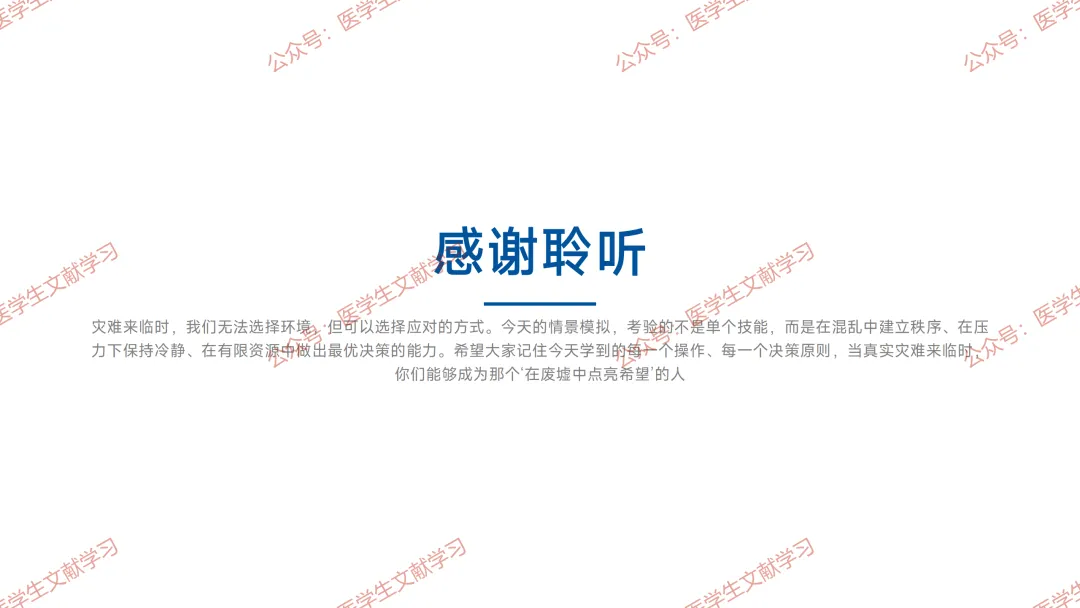 灾难医学首要原则为检伤分类,在有限资源下实现最多人获益。