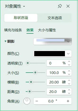 调整每个形状的阴影效果。