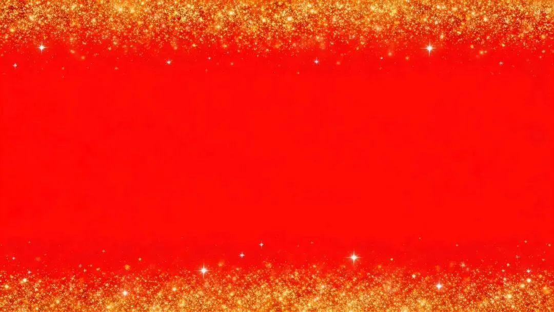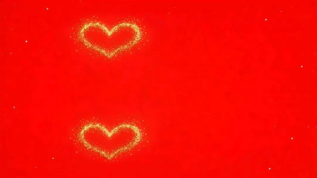 这套喜庆红金闪片PPT背景图,浓郁红底搭配鎏金爱心与星光,自带喜庆高级感