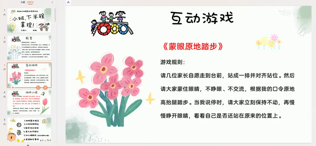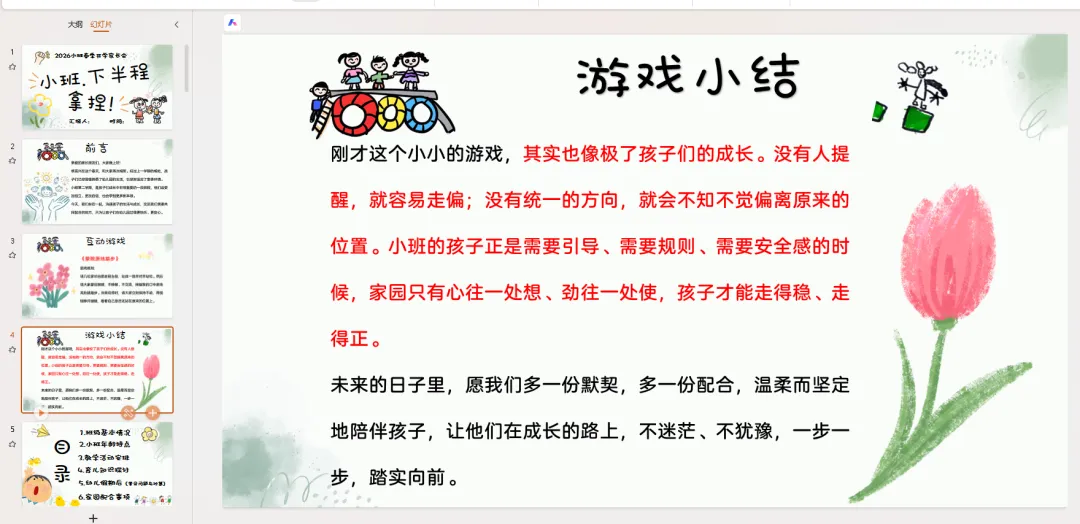 刚才这个小小的游戏,其实也像极了孩子们的成长。没有人提醒,就容易走偏;没有统一的方向,就会不知不觉偏离原来的位置。小班的孩子正是需要引导、需要规则、需要安全感的时候,家园只有心往一处想、劲往一处使,孩子才能走得稳、走得正。
