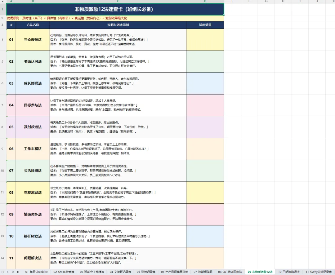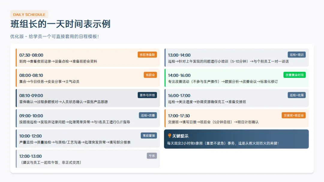 接下来给大家一个可直接套用的工具:《班组长的一天》。