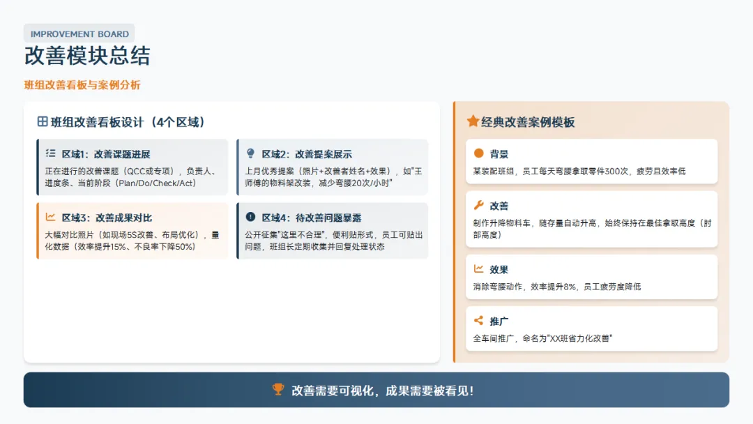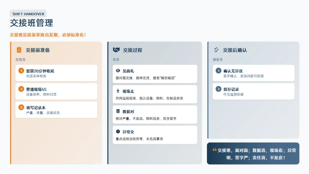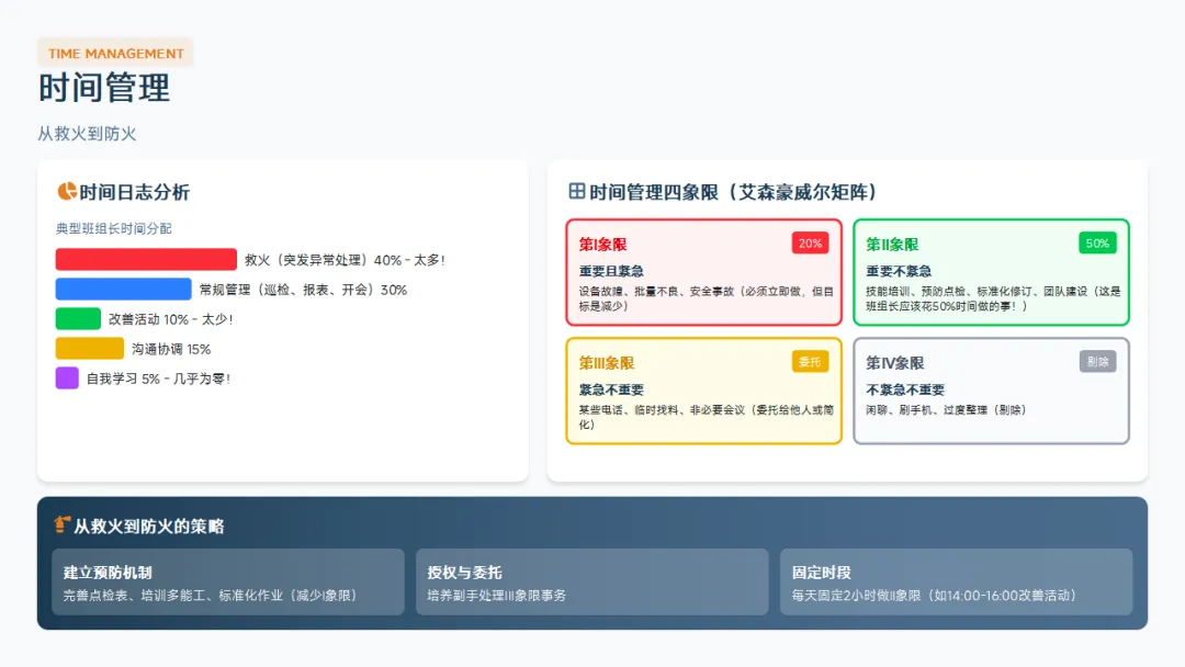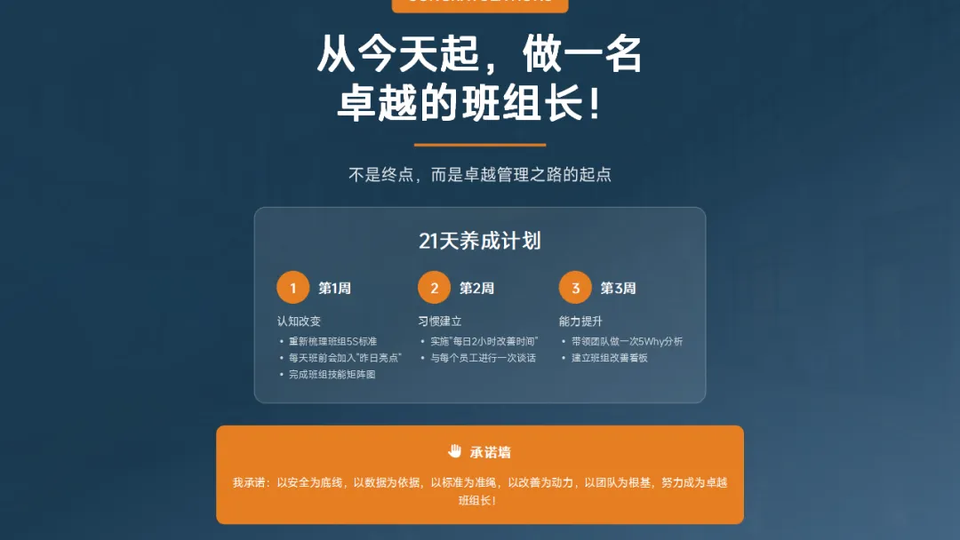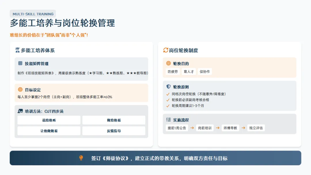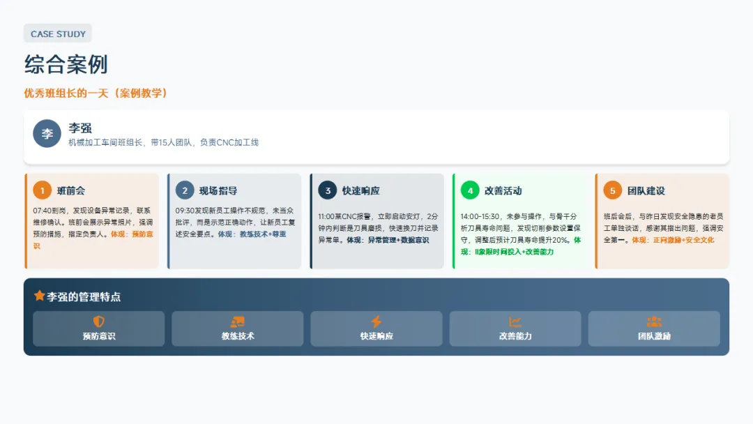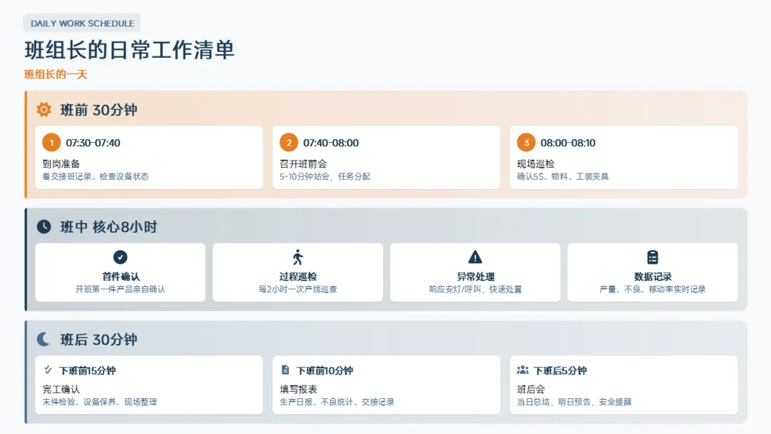 。记住,班组长的价值不在于你个人多能干,而在于你不在的时候团队照样能高效运转。