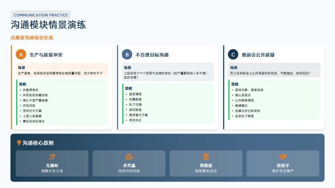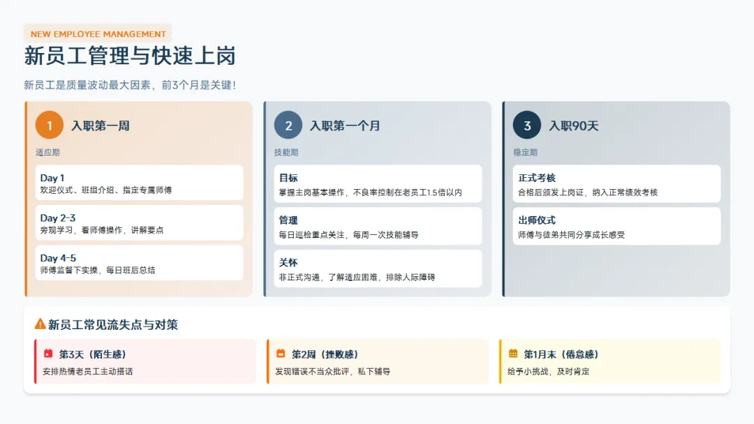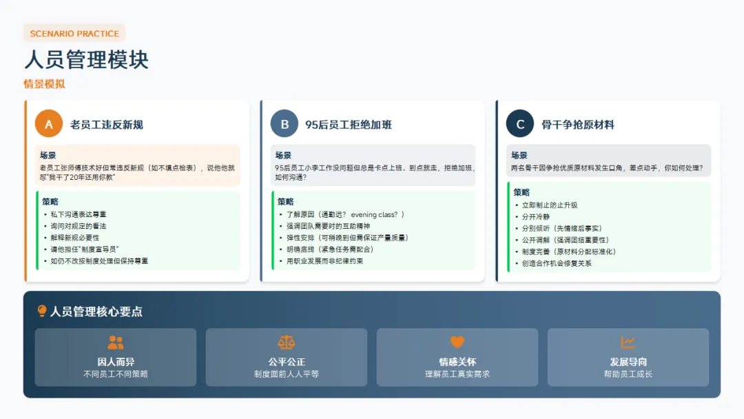 :岗位操作、设备调试、异常处置。这是你立足的根本,技术不过硬,员工不服你。