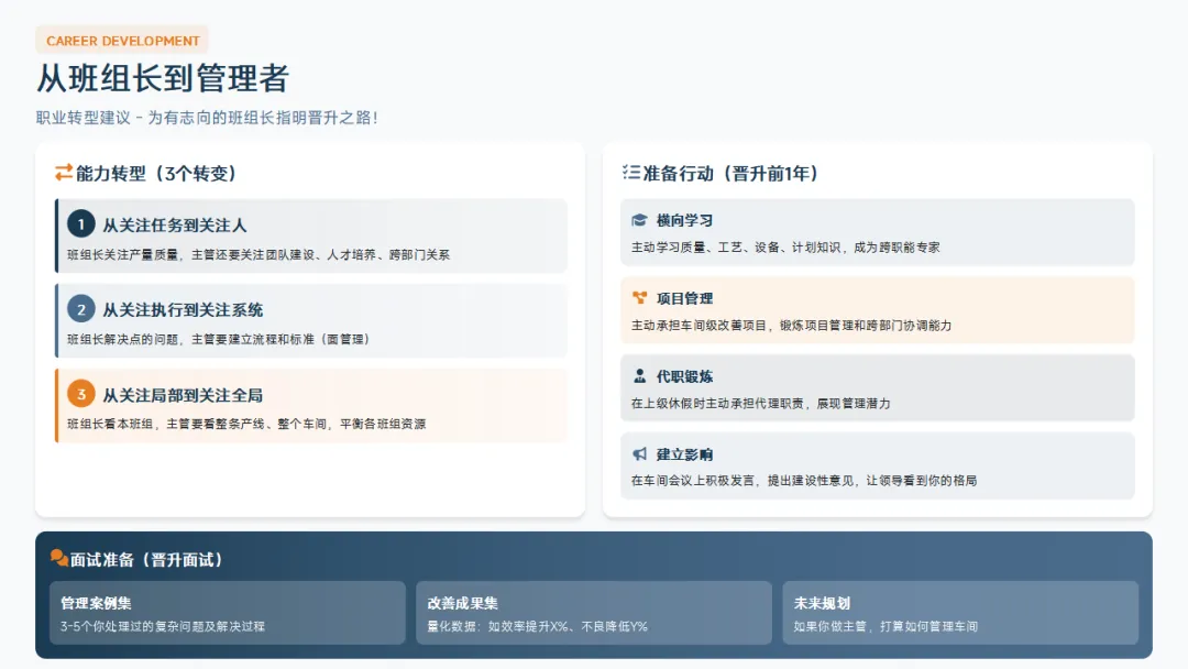 。班组长是职业生涯的分水岭,是通往中高层管理的唯一跳板。如果你想在职业生涯中更进一步,班组长这个阶段的技术与管理双重能力试炼,是你绕不开的必经之路。
