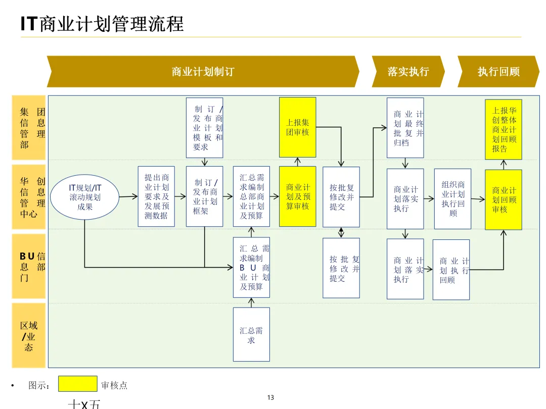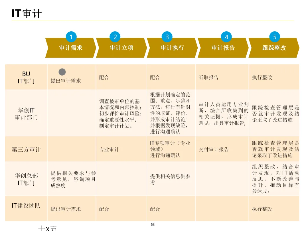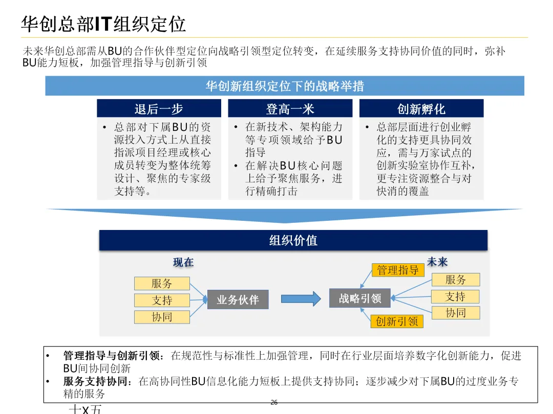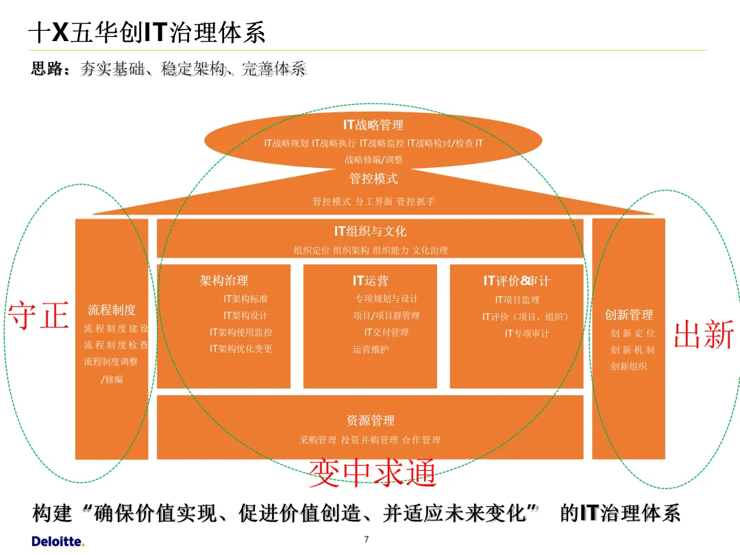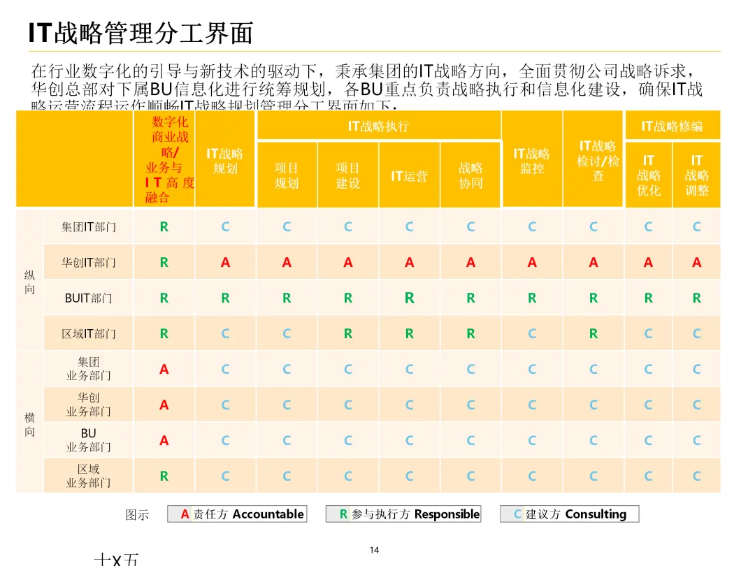 声明:本文内容来源于公众号“数字化战略咨询”,版权归原作者所有(如侵权,扫描上方二维码联系删除)。风陵渡进行深度解读,欢迎大家转载分享。集团IT治理蓝图与机制规划通常围绕战略协同、架构治理、运营管控、评价风控、资源管理、创新管理六大维度展开,以下是具体规划内容:IT战略管理战略规划:结合集团业务战略,制定IT战略方向,明确IT投资计划、项目优先级及演进路线。战略执行:通过信息化项目规划、建设及系统运营,推动IT战略落地。战略监控:建立管理看板、战略预警机制,实时跟踪战略执行情况。战略检讨与修编:定期组织战略检讨,根据业务变化和技术趋势动态调整战略。架构治理架构标准制定:定义企业级IT架构标准,涵盖应用架构、技术架构、数据架构等。架构设计评审:对信息化项目架构方案进行评审,确保符合架构标准。架构使用监控:监控架构在实际项目中的应用情况,及时发现并纠正偏差。架构优化变更:根据业务需求和技术发展,持续优化架构,支持业务创新。IT运营管控专项规划:制定IT专项规划,如基础设施规划、应用系统规划等。项目管理:建立项目管理体系,涵盖项目立项、实施、验收等全过程管理。运维管理:构建一体化运维体系,实现从被动运维向主动服务的转变,保障系统稳定运行。IT评价审计业绩合同考核:将IT工作纳入业绩合同,明确考核指标和评价标准。项目建设评价:对信息化项目进行全生命周期评价,评估项目质量、进度、成本等。内控审计:建立IT内控审计制度,防范IT风险,确保IT合规性。IT资源管理采购管理:规范IT采购流程,加强供应商管理,确保采购质量。资产管理:建立IT资产管理制度,实现IT资产的全生命周期管理。合作管理:加强与外部合作伙伴的合作,整合内外部资源,提升IT能力。创新管理创新机制建设:建立创新激励机制,鼓励员工提出创新想法和解决方案。创新项目实施:推动创新项目孵化,将创新成果转化为实际业务价值。创新资源管理:整合内外部创新资源,为创新项目提供支持。通过以上规划,集团可实现IT与业务的深度融合,提升IT治理水平,为集团战略目标的实现提供有力支撑。【未完...】