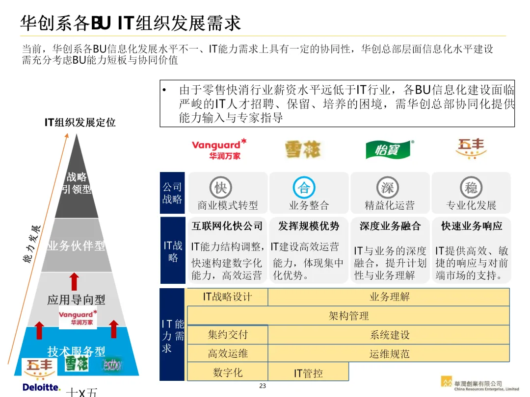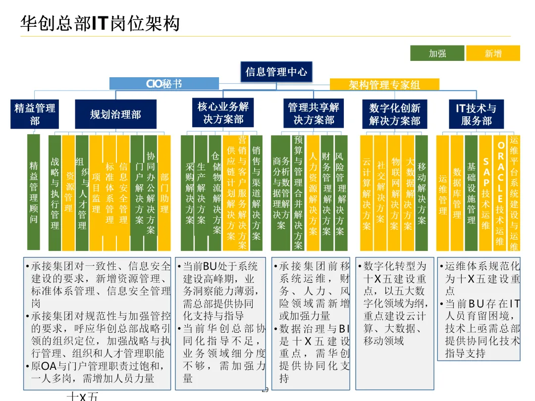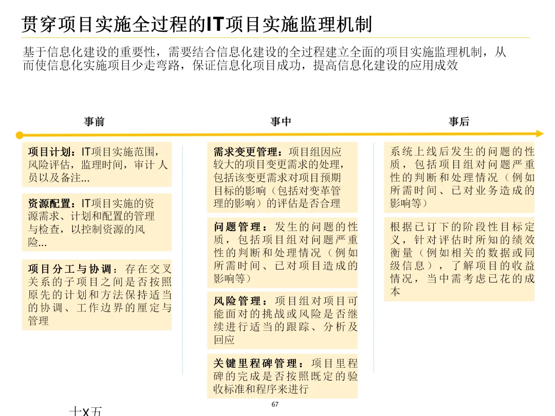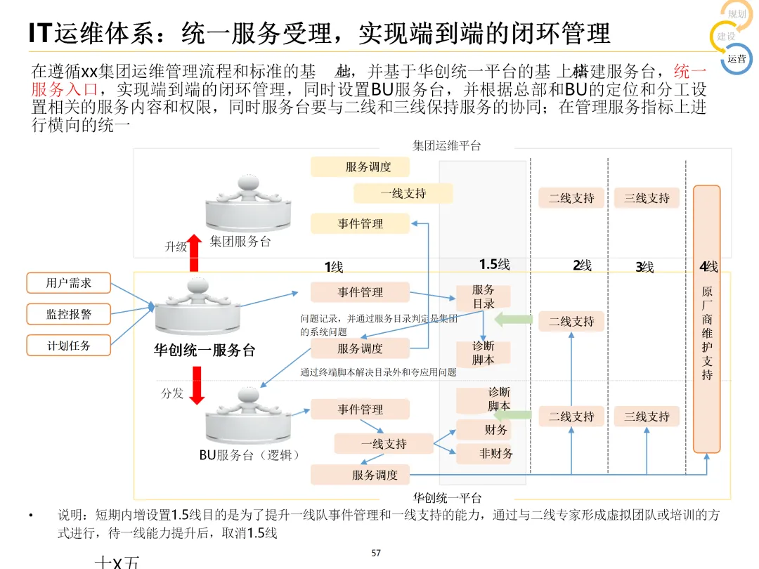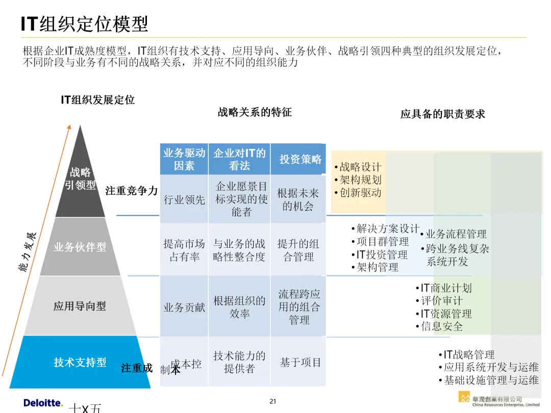 声明:本文内容来源于公众号“数字化战略咨询”,版权归原作者所有(如侵权,扫描上方二维码联系删除)。风陵渡进行深度解读,欢迎大家转载分享。集团IT治理蓝图与机制规划通常围绕战略协同、架构治理、运营管控、评价风控、资源管理、创新管理六大维度展开,以下是具体规划内容:IT战略管理战略规划:结合集团业务战略,制定IT战略方向,明确IT投资计划、项目优先级及演进路线。战略执行:通过信息化项目规划、建设及系统运营,推动IT战略落地。战略监控:建立管理看板、战略预警机制,实时跟踪战略执行情况。战略检讨与修编:定期组织战略检讨,根据业务变化和技术趋势动态调整战略。架构治理架构标准制定:定义企业级IT架构标准,涵盖应用架构、技术架构、数据架构等。架构设计评审:对信息化项目架构方案进行评审,确保符合架构标准。架构使用监控:监控架构在实际项目中的应用情况,及时发现并纠正偏差。架构优化变更:根据业务需求和技术发展,持续优化架构,支持业务创新。IT运营管控专项规划:制定IT专项规划,如基础设施规划、应用系统规划等。项目管理:建立项目管理体系,涵盖项目立项、实施、验收等全过程管理。运维管理:构建一体化运维体系,实现从被动运维向主动服务的转变,保障系统稳定运行。IT评价审计业绩合同考核:将IT工作纳入业绩合同,明确考核指标和评价标准。项目建设评价:对信息化项目进行全生命周期评价,评估项目质量、进度、成本等。内控审计:建立IT内控审计制度,防范IT风险,确保IT合规性。IT资源管理采购管理:规范IT采购流程,加强供应商管理,确保采购质量。资产管理:建立IT资产管理制度,实现IT资产的全生命周期管理。合作管理:加强与外部合作伙伴的合作,整合内外部资源,提升IT能力。创新管理创新机制建设:建立创新激励机制,鼓励员工提出创新想法和解决方案。创新项目实施:推动创新项目孵化,将创新成果转化为实际业务价值。创新资源管理:整合内外部创新资源,为创新项目提供支持。通过以上规划,集团可实现IT与业务的深度融合,提升IT治理水平,为集团战略目标的实现提供有力支撑。【未完...】