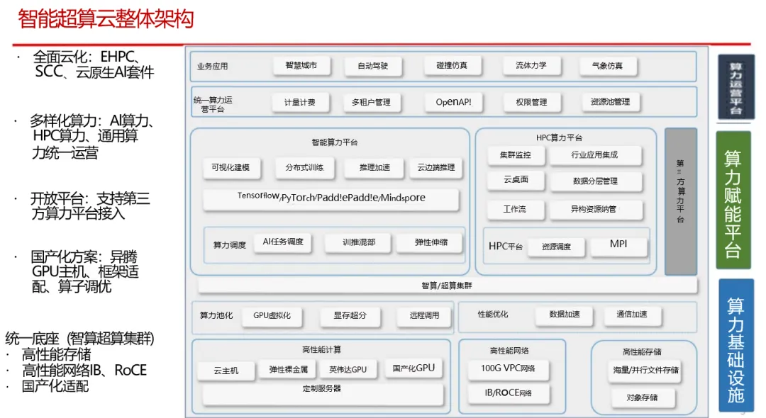 该方案通过"高速网络+并行存储+智能调度"的三位一体架构,突破传统超算的扩展瓶颈,实现算力资源的高效聚合与弹性供给。