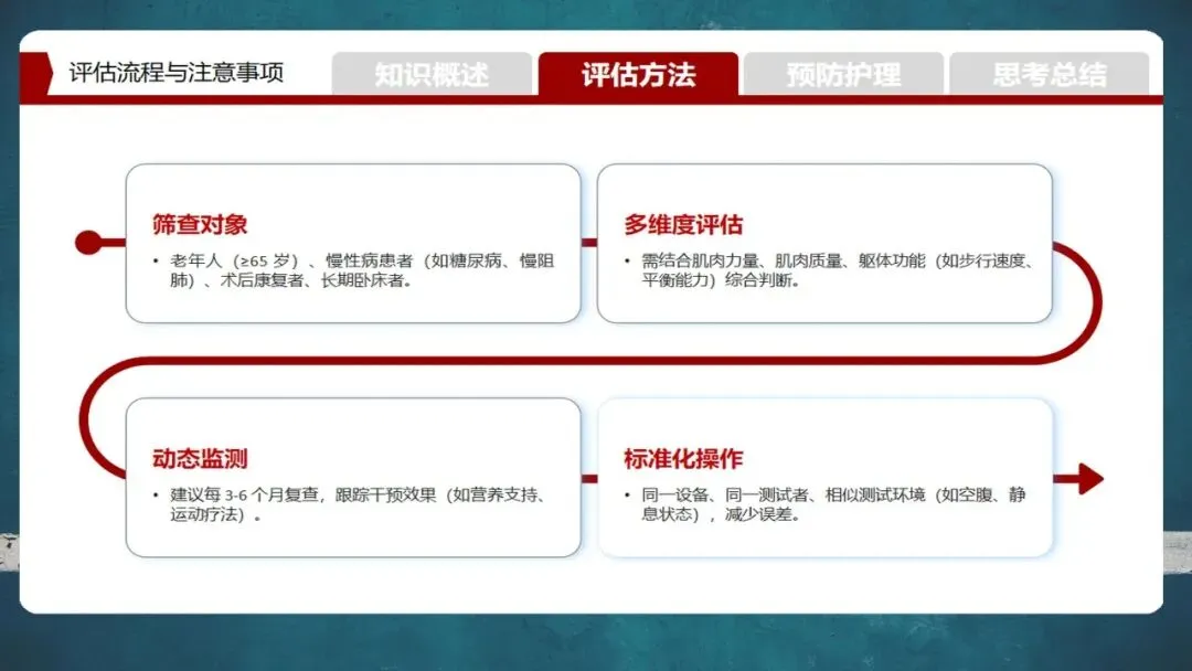 那么,如何科学应对肌少症?关键在于“早评估、早干预、全程管理”。