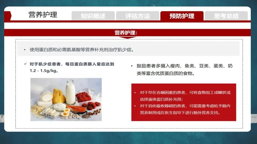 我们还需关注患者的环境安全、心理状态和日常生活能力。地面防滑、扶手安装、行走协助、心理疏导、社交支持,都是护理中不可或缺的环节。多学科协作、家庭支持、社区随访,构成了肌少症全程管理的坚实网络。