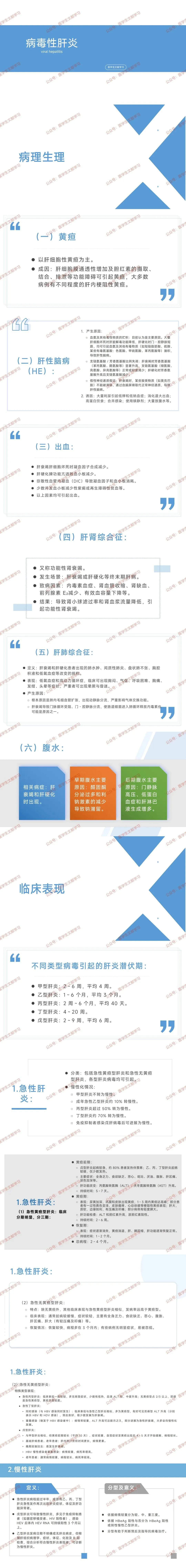 小儿病毒性肝炎:急性多为黄疸型(以甲肝为主),起病急、黄疸前期短,消化道 / 呼吸道症状明显,婴儿病情重可进展为肝衰竭;慢性以乙肝 / 丙肝多见,病情轻,小儿免疫不成熟易形成 HBV 免疫耐受,多无症状(隐性感染或无症状携带者)。