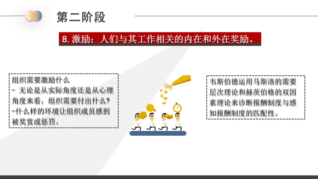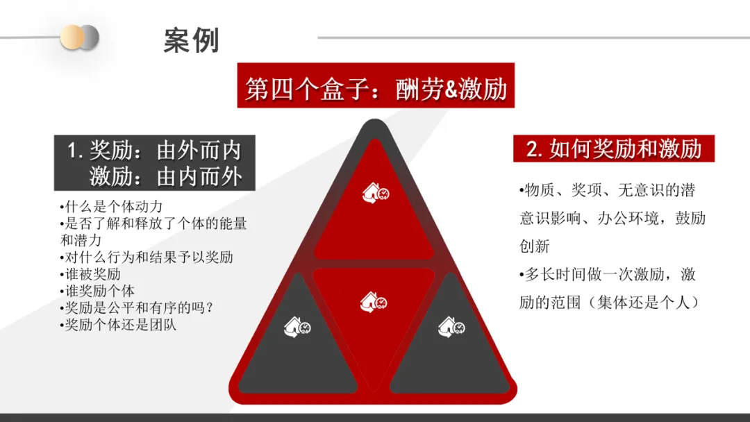 酬劳 & 激励:区分外部奖励与内部激励,挖掘个体动力源泉,明确奖励行为与对象,确保激励公平有序,通过物质奖励、创新支持等多维度激发员工潜力。