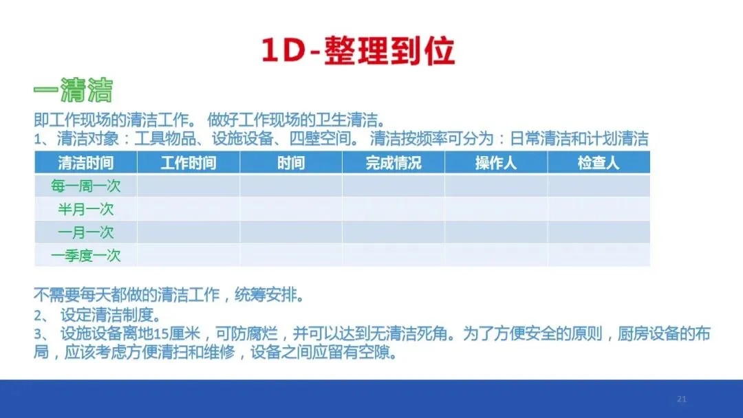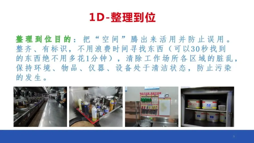 把“空间”腾出来活用并防止误用。整齐、有标识,不用浪费时间寻找东西(可以30秒找到的东西绝不用多花1分钟),清除工作场所各区域的脏乱,保持环境、物品、仪器、设备处于清洁状态,防止污染的发生。