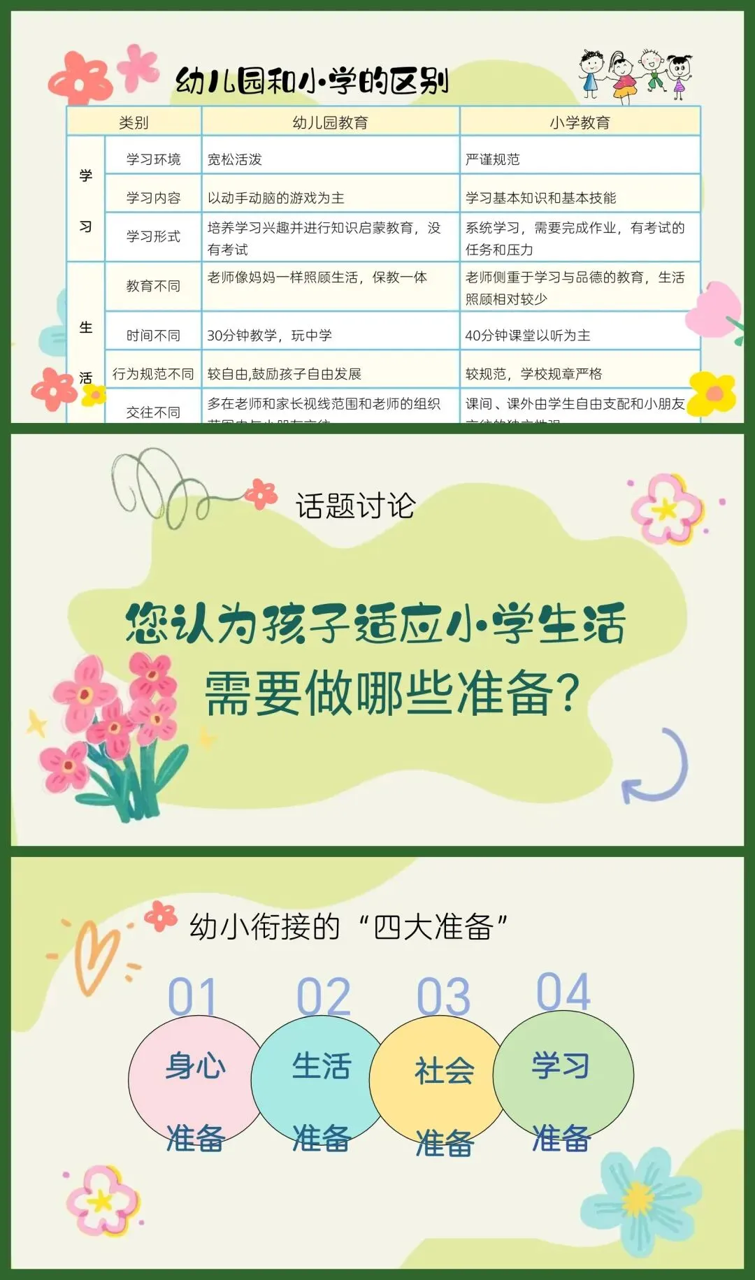 经过一个欢乐的寒假,孩子们带着满满的活力与成长回归。本学期, 是孩子们在幼儿园的最后一段时光, 也是幼小衔接的关键时期 。 接下来, 我们 将围绕孩子的学习、生活、心理准备等方面,分享科学的引导方法,让我们共同 携手为孩子们的幼儿园生活画上圆满句号,也为他们顺利步入小学铺就坚实的道 路。