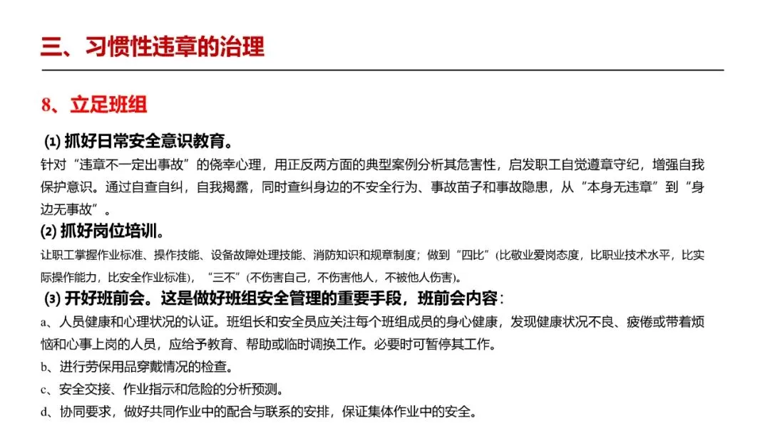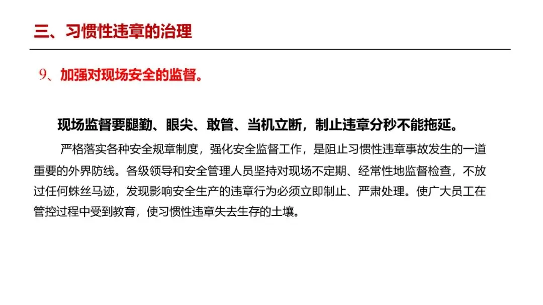 现场习惯性违章防范需聚焦关键环节,构建闭环管理体系: