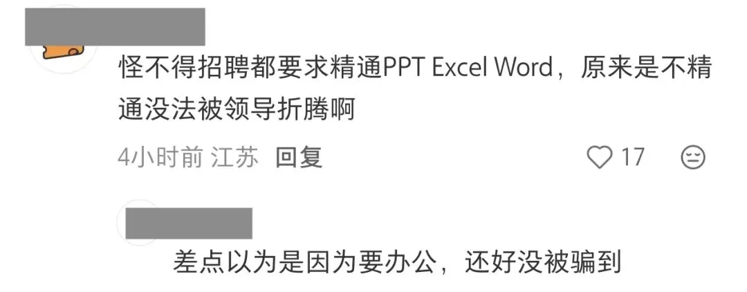 有人表示:怪不得招聘要求精通ppt Excel,原来是不精通就不配被领导折腾。。。🙄🙄