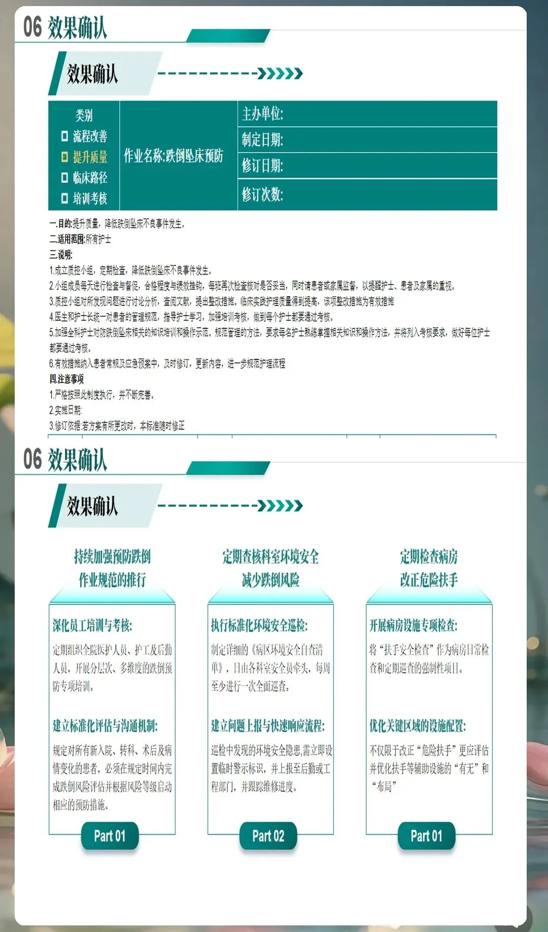 环境改造的改进策略包括:增加夜间照明,安装感应式夜灯;优化卫生间标识,采用大字体、高对比度的标识;增设防滑设施,如防滑垫、扶手、警报器等;床栏改进,采用患者无法自行解除的约束型床栏,或安装床栏报警装置。
