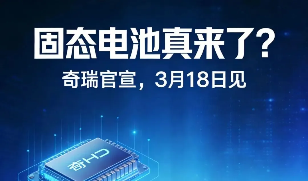 奇瑞固态电池真要装车了,不是PPT吹牛,也不是实验室拍视频,3月18日那天,第一批能上路的样车就要开出来.