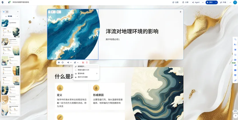 比如,你觉得“洋流的分类”应该放在第一张,你可以直接拖拽调整顺序。
