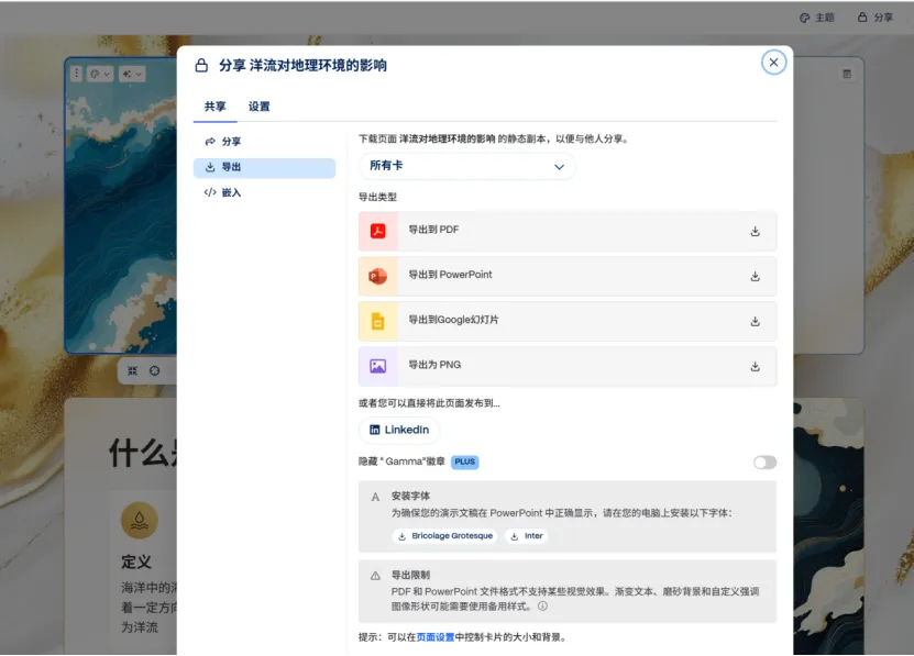 全部满意后,点击右上角的“分享(Share)” -> “导出(Export)”,你可以免费将其导出为 PDF 或 PPTX 格式,直接带进教室使用!