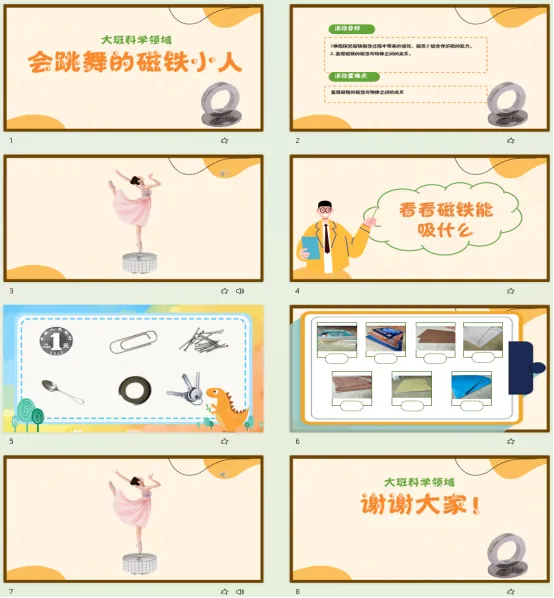 幼儿园大班科学《会跳舞的磁铁小人》PPT、教案、反思、课堂实录