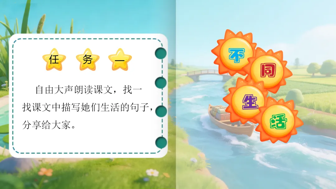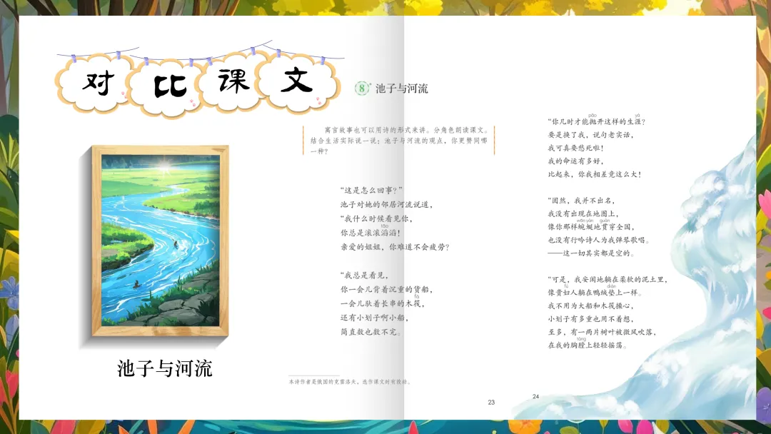 师:有没有发现,这也是池子说的话?是池子看到的河流的生活!来