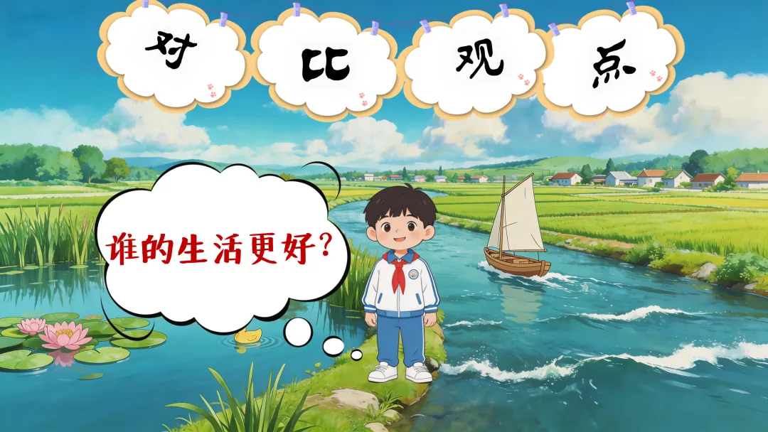 师:你看,她们都觉得自己的生活好,也就是各有各的观点!那作者的观点呢?你第一个举手。