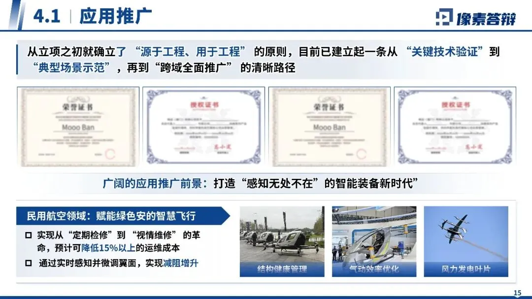 各幻灯片按研究背景、研究过程、成果价值、应用前景的逻辑组织,与口头答辩流程呼应,确保逻辑连贯、过渡自然;兼顾专业性与通俗性,避免过度晦涩,让评审专家能顺畅理解项目核心价值,提升答辩效果。