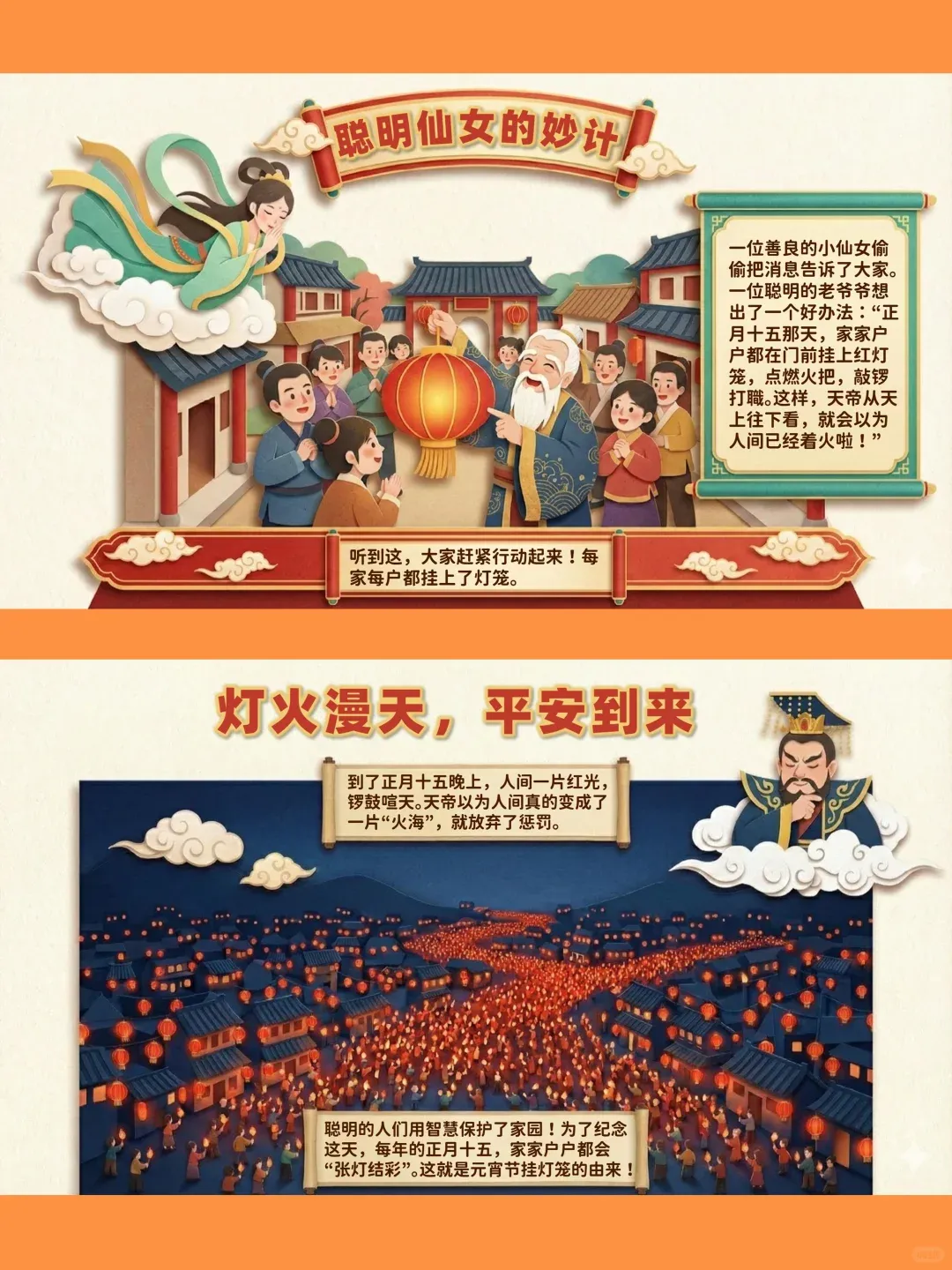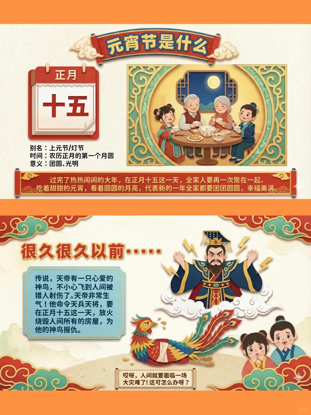1⃣️ 了解元宵节的由来与传统习俗,知道元宵节也叫“灯节”,寓意团圆和光明。