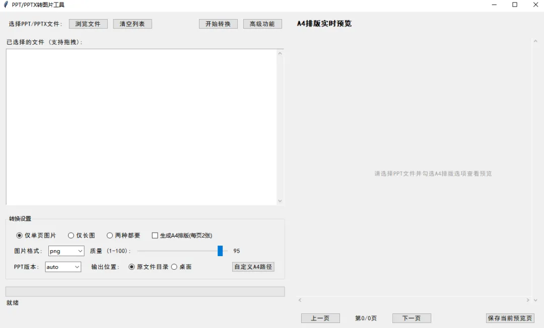 这是一款专为办公、教学和内容创作者打造的轻量级工具,能快速将 PPT/PPTX 文件转换为高清图片,支持多样化排版与自定义输出,让你的演示文稿素材复用更高效。