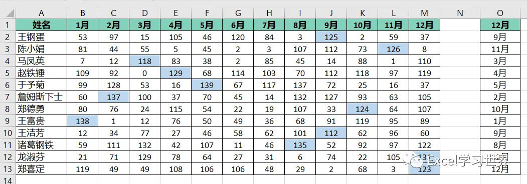 然后我们再在原数据表上高亮显示每个月的最大值。