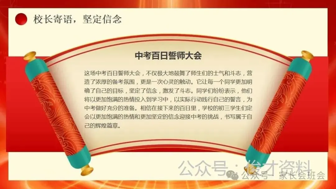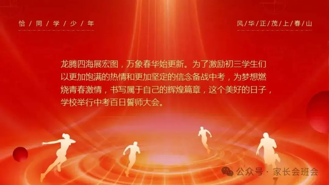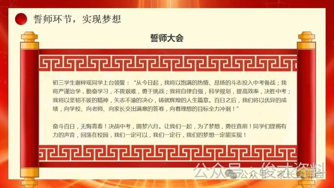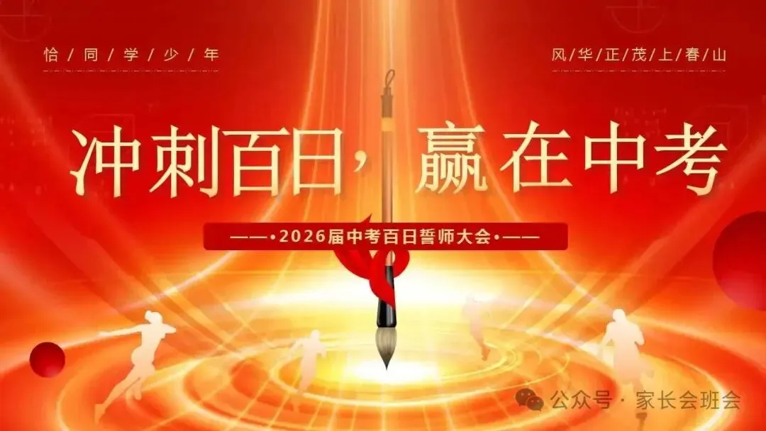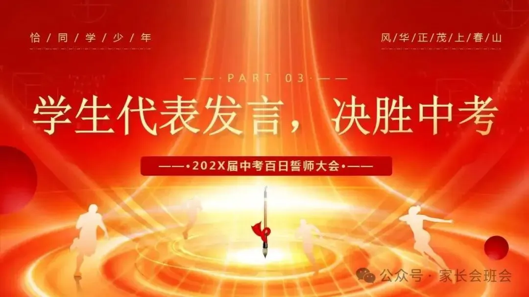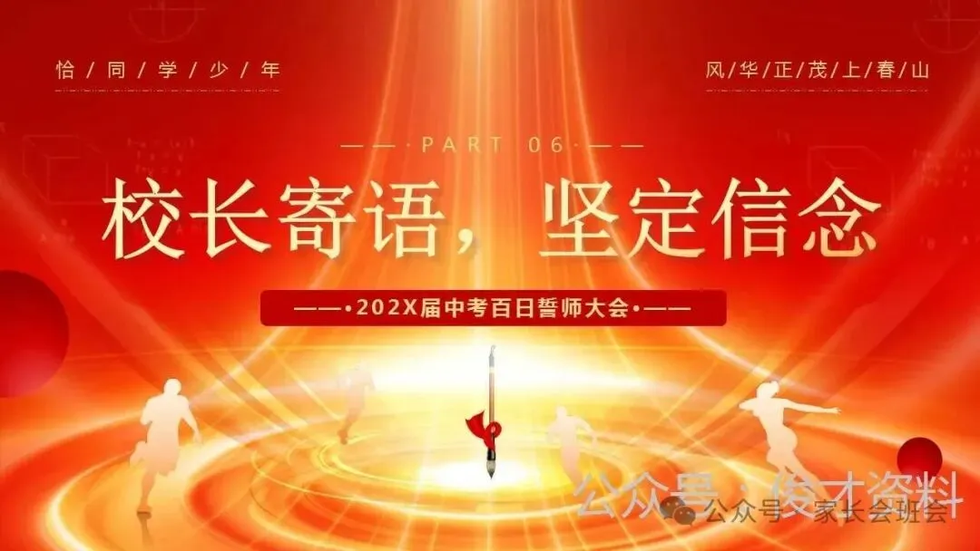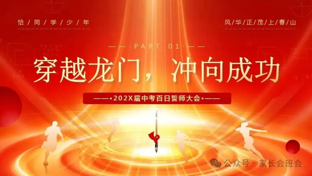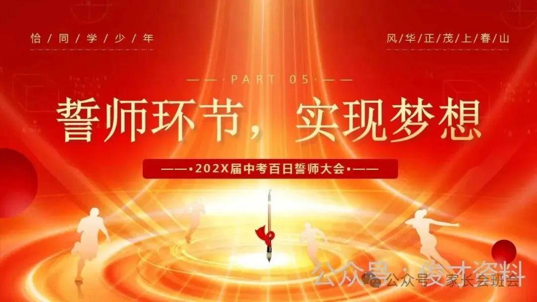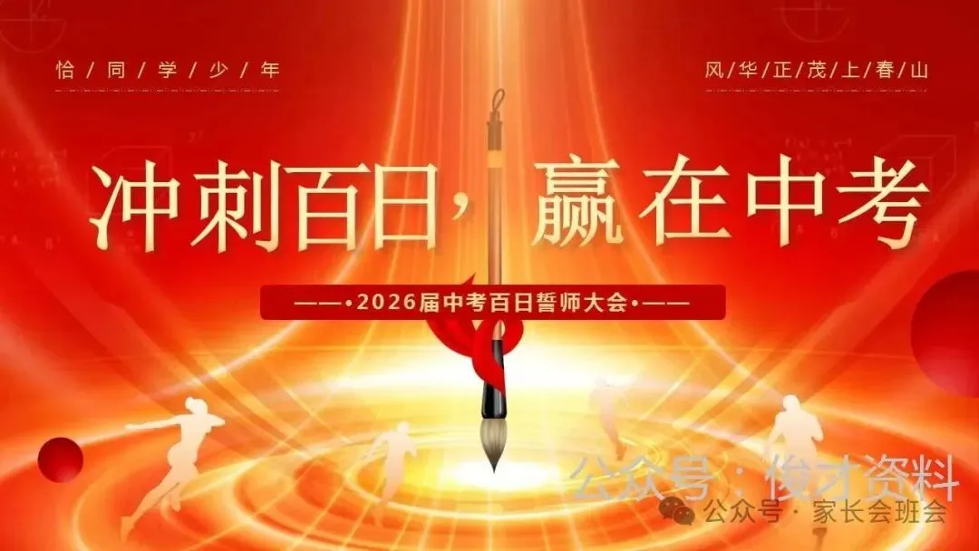 2026届初三中考百日誓师大会仪式流程ppt模板:冲刺百日,赢在中考。可编辑,21页PPT,获取方式见文章末尾!