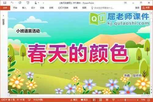 教师:“我们一起来听首名为《春天的颜色》的儿歌吧。”