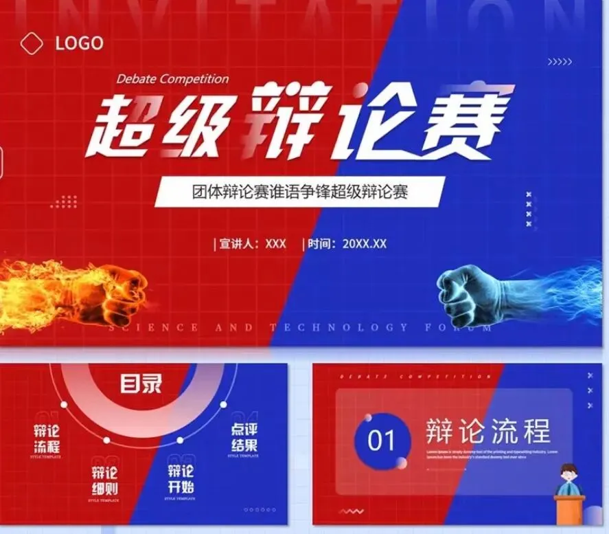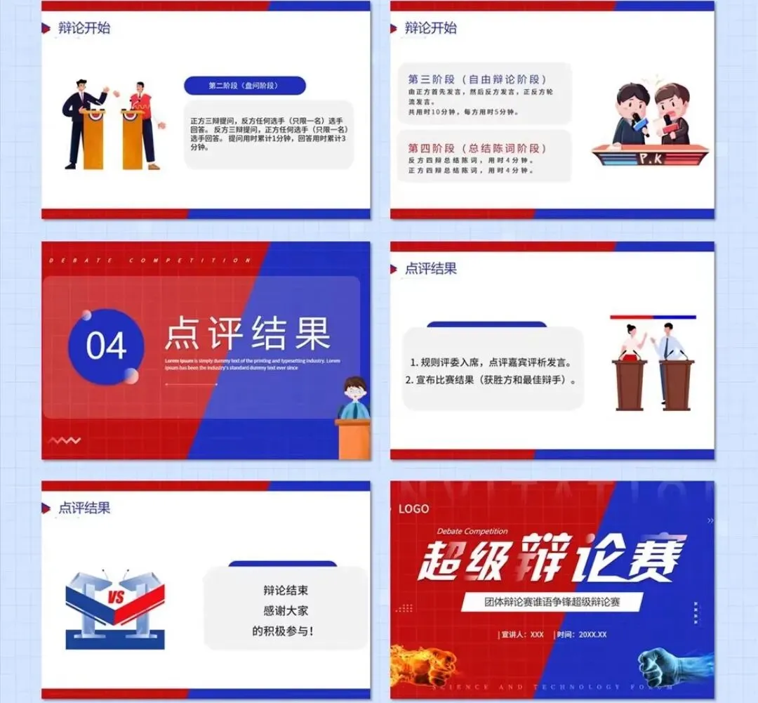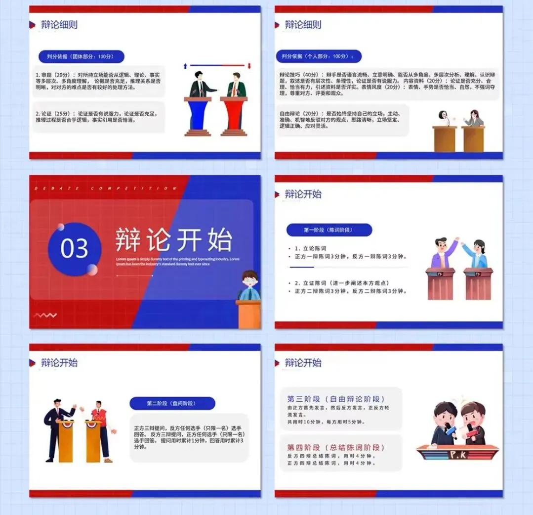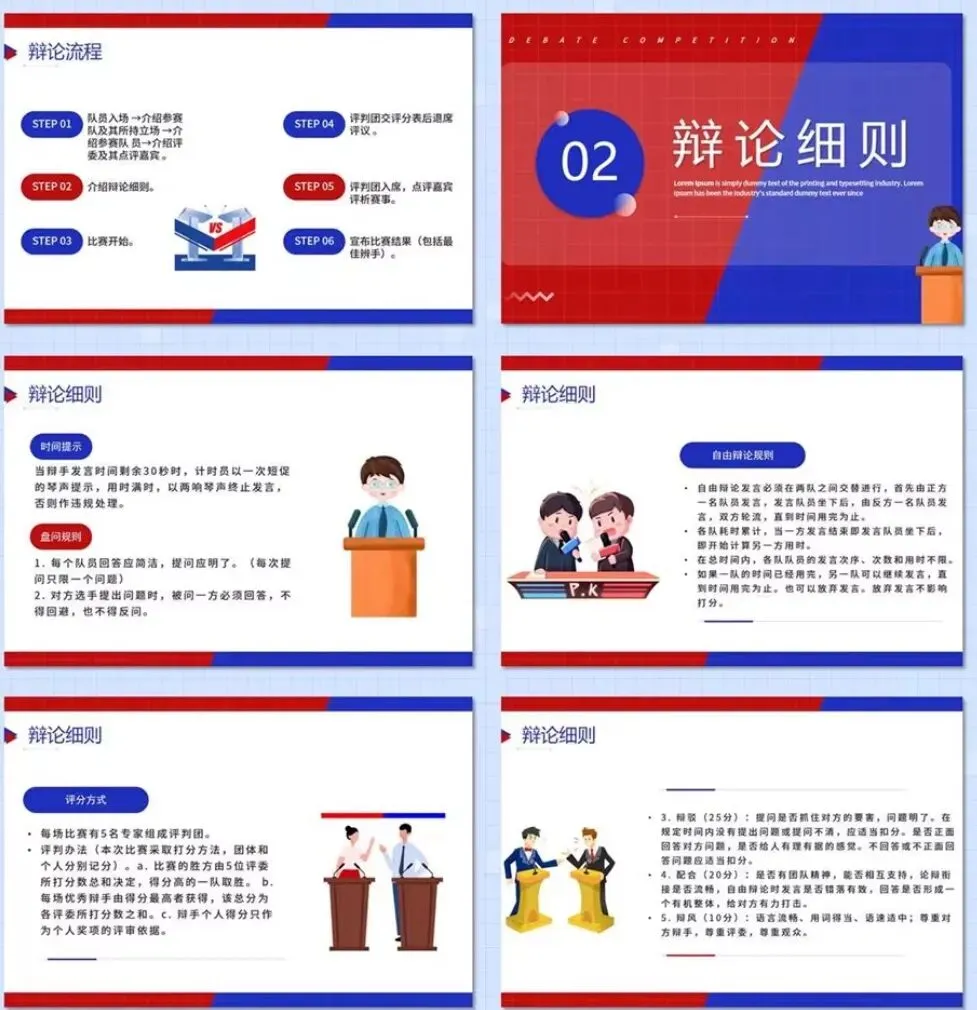 【PPT模板】团体辩论赛流程PPT含完整内容