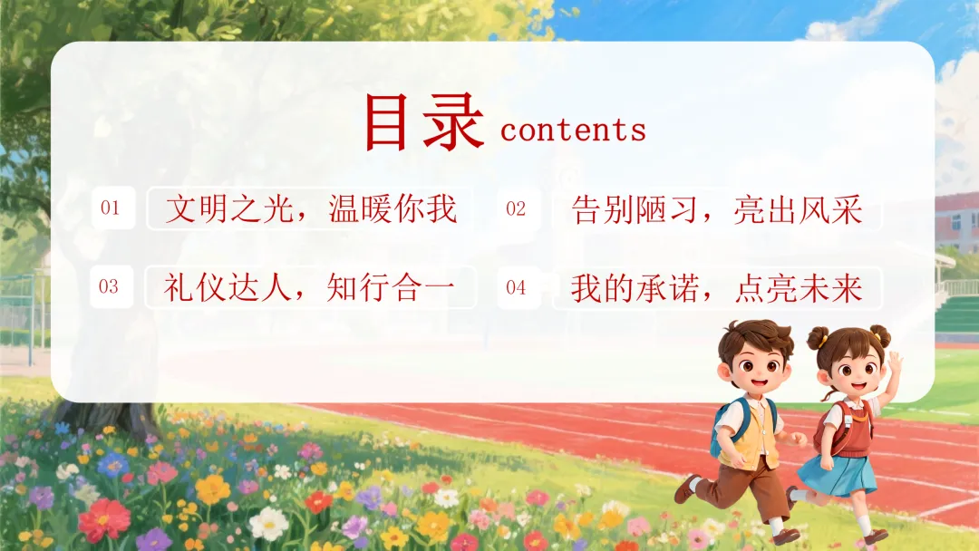 很高兴在这与您相遇,如果您是一位班主任老师,每天除了应对繁重的教学工作,还要加班整理班级、教务、教研、课件PPT资料,请关注下方的“春雨教务资料”,让我们风雨同路、一起成长~今天分享的是通用小学小学生【文明礼仪】主题班会的ppt课件和配套的发言稿,主题是《文明礼仪伴我行》《文明礼仪伴我行,争做阳光好少年》主题班会课逐字稿