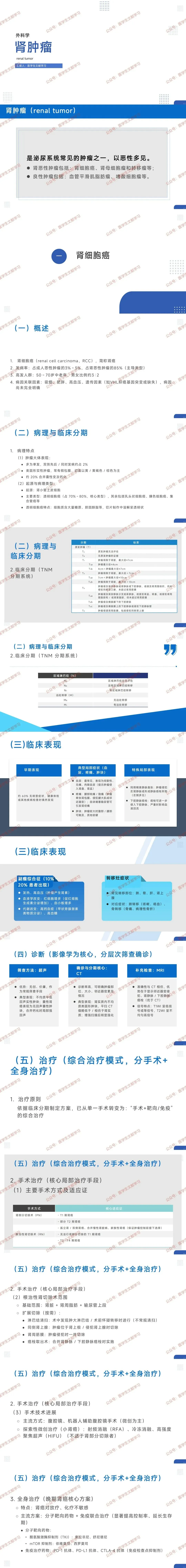 - 定位:占成人恶性肿瘤 3%~5%,占肾恶性肿瘤 85%,50~70 岁高发,男女比例 3∶2。