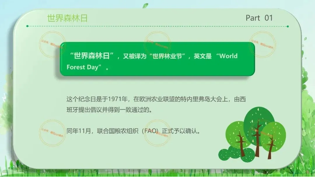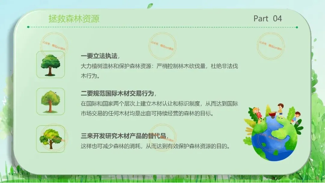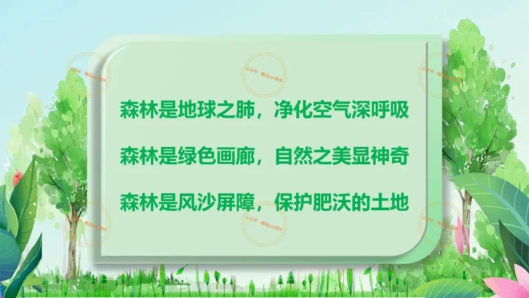 2、本公众号成立的初衷是为广大ppt使用者提升工作效率,所发布的课件资源仅供学习交流禁止用于商业用途,有偿所得用来维系公众号运营所支出的人工成本,性质为买家友情赞助后获取的信息差而非售卖资源的费用。同意此声明后即可下载本期2026年3月21世界森林日保护森林主题班会ppt课件。如有侵犯您的权利,请联系小沐老师。