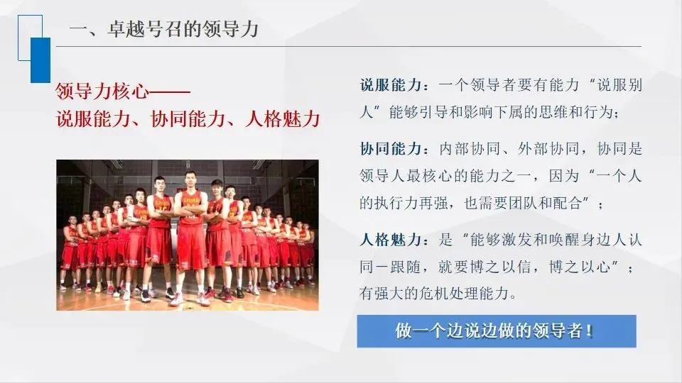 一个领导者要有能力“说服别 人”能够引导和影响下属的思维和行为;