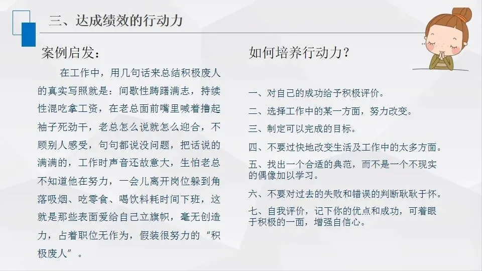 有耐心,不半途而废,从小事入手,逐步改变,慢慢形成高效习惯;