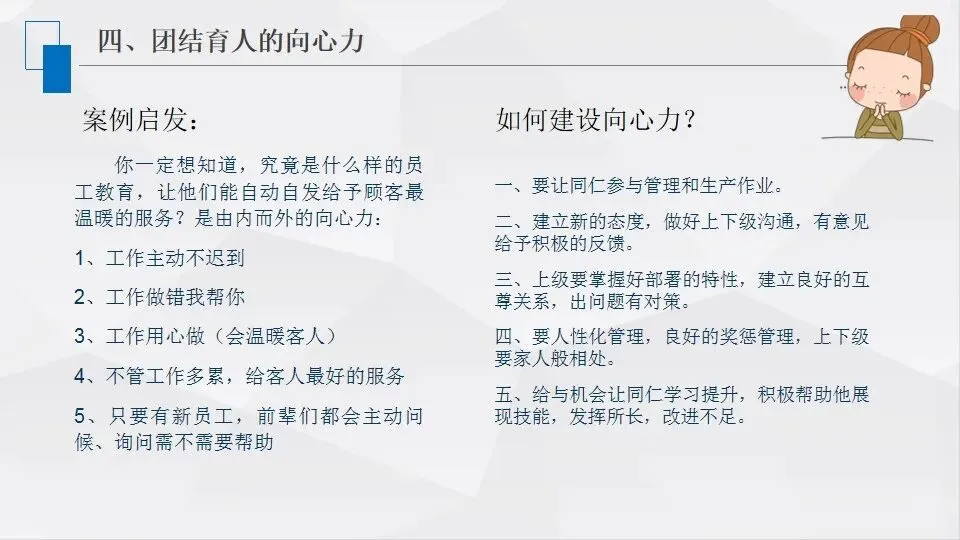 干部如果目标不清晰、分工不合理、方法不传授、激励不到位,员工就容易迷茫、敷衍、出错。反之,管理者明确标准、耐心带教、合理安排、及时反馈,再普通的员工也能找准方向、做出成绩。